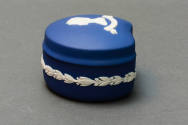MarkingsOn lid “1952 SILVER JUBILEE 1977” on banner under portrait. Impressed WEDGWOOD, MADE IN ENGLAND on bottom.