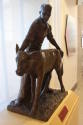 Label TextCommissioned along with "The Cornhusker" for the lobby of the Hotel Sheldon Munn in Ames, Iowa, "4-H Calf" is one of the most open forms that Christian Peterson ever produced. Its broad triangular shape and expressive physical characteristics give the work a liberated anecdotal quality. The sculpture most likely was inspired by scenes at the Iowa State Fair, where Petersen occasionally presented sculpting demonstrations. Obviously regional in subject, "4- H Calf" is one of the most compelling indicators that Petersen was one of few three-dimensional artists who embraced the regionalist movement. The 4-H Calf was inspired by, and is a tribute to, Iowa’s youth who learn and labor on farms. Here, an adolescent farm boy, is studiously positioning his calf for judging at the Fair. Norma "Duffy" Lyon continued the tradition of sculptural demonstrations at the Iowa State Fair, and was famous for her butter cows. Mrs. Lyon was a student of Christian Petersen. This sculpture was cast posthumously in bronze in 2003 from the 1941 original plaster model. Christian Petersen's (Danish-American, 1885-1961) career advanced during a transitional stage in American sculpture when styles moved from heroic to realistic. He emigrated to America from Denmark with his family in 1894. After attending several different art schools, beginning a die-cutting career, and receiving some sculpture commissions, Petersen moved to the Midwest. There he was invited to join the Iowa Public Works of Art Project (PWAP) under the direction of Grant Wood in Iowa City. In 1934, Iowa State President Raymond Hughes offered Petersen a one-semester residency to create the fountain and bas-reliefs in the Dairy Industry Building (now Food Science) courtyard. One semester turned into 21 years, and from 1934-1955 Petersen served as Iowa State's sculptor-in-residence. At the time, he was the only sculptor-in-residence at any college or university in the United States, for which he earned $25 per week. Petersen created numerous works of art, including twelve major public art sculptures, which can be viewed throughout the Iowa State University campus.