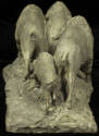 In January 1934, Grant Wood, famed Iowa artist and director of the Iowa Public Works of Art Project (PWAP), invited Christian Petersen to join his studio at the State University of Iowa, Iowa City, where Petersen became the only professional sculptor employed by the project. This painted plaster study, featuring four running buffaloes, was created by Petersen during his employment with the PWAP. It served as a preliminary model for a proposed bridgehead sculpture in Des Moines that was ultimately never realized. Notably, this is one of only two small sculpture maquettes Petersen produced for the PWAP.