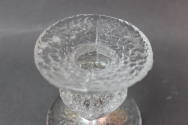 Label TextDesigned by designer Timo Sarpaneva in 1967, the Festivo candleholder has become an international collector's favourite and is one of the most recognisable objects of Finnish design. The Festivo candleholder originated when Timo Sarpaneva designed a large wine glass to hold a whole bottle of wine attached to the base of the candle holder. The idea of making a candleholder from the foot of the glass was born, and thus, the prototype of a new classic was born. The surface imitating melting ice gives the candleholder a unique look. The candleholders have been in production since 1967 and are manufactured at the Iittala glass factory in Finland.