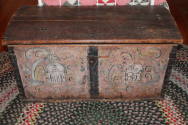 Just as rosemaling began to go out of fashion in the late 19th century, Norwegians began a mass emigration to North America. Immigrants brought along some of their most treasured objects, including decorated trunks, as they journeyed to the New World for a new life. With this wave of immigration came artists and the art of rosemaling – bringing a uniquely Norwegian decorating style to America. This functional Norwegian trunk with its decorative flourishes is an example from 1852 with detailed rosemaling and is personalized with the date and name “Anna.”
