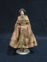MediumHead: paper mache Body: leather/kid Limbs: wooden lower limbs Clothes: silk
