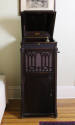 Markings2 metal labels-left hand corner-inside top. One is round w/ a lady gesturing to a building- it reads-"Diamond Disc- official Laboratory Model" and signed "Thomas A. Edison" Other label is rectangular with "Edison Disc Phonograph" in bold. "Patented NOv. 17, 1903; Jan 30, 1906; Feb. 4, 1908; March 11, 1913; Sept. 15, 1914; "Thomas A. Edison, Inc., Orange, N.J., U.S.A."