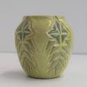 Label TextFor six years, from 1924 to 1930, Paul E. Cox, head of ceramic engineering, and Mary Lanier Yancey, a ceramics instructor in applied art, collaborated to create marketable handcrafted art pottery at Iowa State College. Yancey worked as the designer in the collaboration, while Cox operated as technician and promoter of their products, working tirelessly to increase awareness of ceramic engineering at Iowa State. Cox was a graduate of Alfred University, an accomplished student of Charles Binns, and an innovative ceramic technician. Yancey was a graduate of Newcomb College, Tulane University in New Orleans. Cox typically threw the pottery freehand and Yancey decorated the wares with a carved or incised design and inlaid painting. She often used abstract or realistic patterns of clover, lilies, poppies, jonquils, tulips, blackberries, maple seedlings, pinecones and pine needles.
