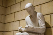 Label TextIn 1944 Christian Petersen created the larger-than-life sculptures for two pedestals flanking the stairs of the east lobby in the original Iowa State Library. The Library Boy and Girl are formidable images that embody strength and youth. Petersen chose to make his figures sturdy midwestern students, like the men and women he taught in his art classes or met at campus activities.