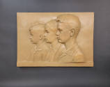 During his long career, Christian Petersen created hundreds of bas relief portraits. Widely recognized on campus for his talents in sculpting, he received private portrait commissions for the children of Iowa State College (now University) faculty and staff. This bas relief, created in plaster, depicts the three children of Dr. William and Mrs. Mildred Murray of Ames, Iowa. On this finished plaque, the children are arranged in a line, all facing left, with eldest son, David, on the far right, next to daughter, Jean, and youngest son, John.