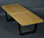 Label TextGeorge Nelson's Platform Bench (designed in 1946) is one of the great icons of mid-century modernism. For Herman Miller's® influential design director, utility was as important as beauty. His spare rectangular bench is proof. It serves equally well as table, platform base or seating, depending on need and situation. No wonder it's been called timeless, something this functional never dates. The slats are made of finished maple with finger-jointed legs for superior strength.